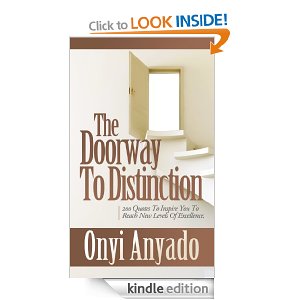 The Doorway to Distinction contains 200 of Onyi’s self-made quotes, and covers goals; excellence; distinction and vision. Each quote has a summary that will assist you with your vision; aid you with your goals; inspire to new levels of excellence and challenge you to become a person of distinction.