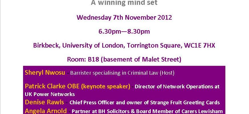 Angela Arnold will be joining our ‘Getting to the top – a winning mindset’ master class at Birkbeck, University of London.