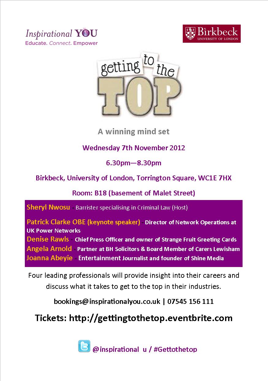 On Wednesday 7th November Inspirational YOU held a master class at Birkbeck, University of London featuring four leading professionals who discussed